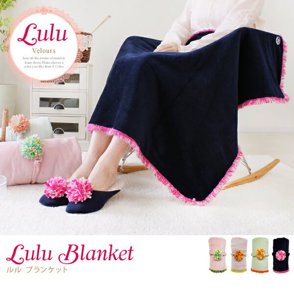 ベロア生地を使用した、パステルカラーのひざ掛けです。こちらは、ピンク x グリーンカラー。■サイズ:120cm × 78cm ■素材:本体 : 綿80%、ポリエステル20%裏地 : ポリエステルボタン : プラスティック■備考:お届けまでには約1週間頂いております。HOME > ひざ掛け・ブランケット > lulu-krベロア生地を使用した、パステルカラーのひざ掛けです。こちらは、ピンク x グリーンカラー。パープル x イエローカラーグリーン x ピンクカラーネイビー x ピンクカラー厚みのあるベロア生地なので、しっとりした滑らかな触り心地です!ふっくらした裏地が、体を優しく包んでくれます。保温性に優れていますので、体が冷えやすい方には特におすすめです。生地端に色鮮やかなパイル地を使用することで、より女の子らしいデザインになっています。使用しない時には、付属の花バンドでコンパクトに可愛くまとまります!持ち運びにも便利♪花バンドは、まとめる以外にも手に巻いたり・・・シュシュとして使用することもできます!そでボタンをとめれば、ボレロ風に♪ 花バンドで前をとめれてケープ風にも着用可!「Lulu」は、ルームシューズやルームブーツ、ポンチョもシリーズで展開しています。お部屋でも、おしゃれを楽しんでいただけます♪