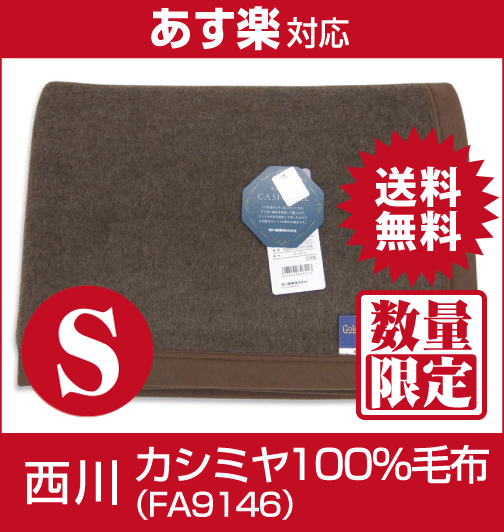 【即納!激安・最低価格保証!】【あす楽対応】西川 高級カシミヤ100%毛布S(ムジ・FA9146)日本製 カシミアケット/滑らかな肌触り!極めて軽く、最高の暖かさ!/カシミア毛布[数量限定処分] 【RCPdec18】